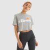 The Alberta Crop T-Shirt. Add a classic stylish Tee to your collection with the ellesse Alberta Crop Top. The standard fit short sleeve Crop Top has a ribbed neckline for optimised comfort, set in sleeves and is complete with our signature ellesse plastisol print across the chest and our classic woven label to the cuff.